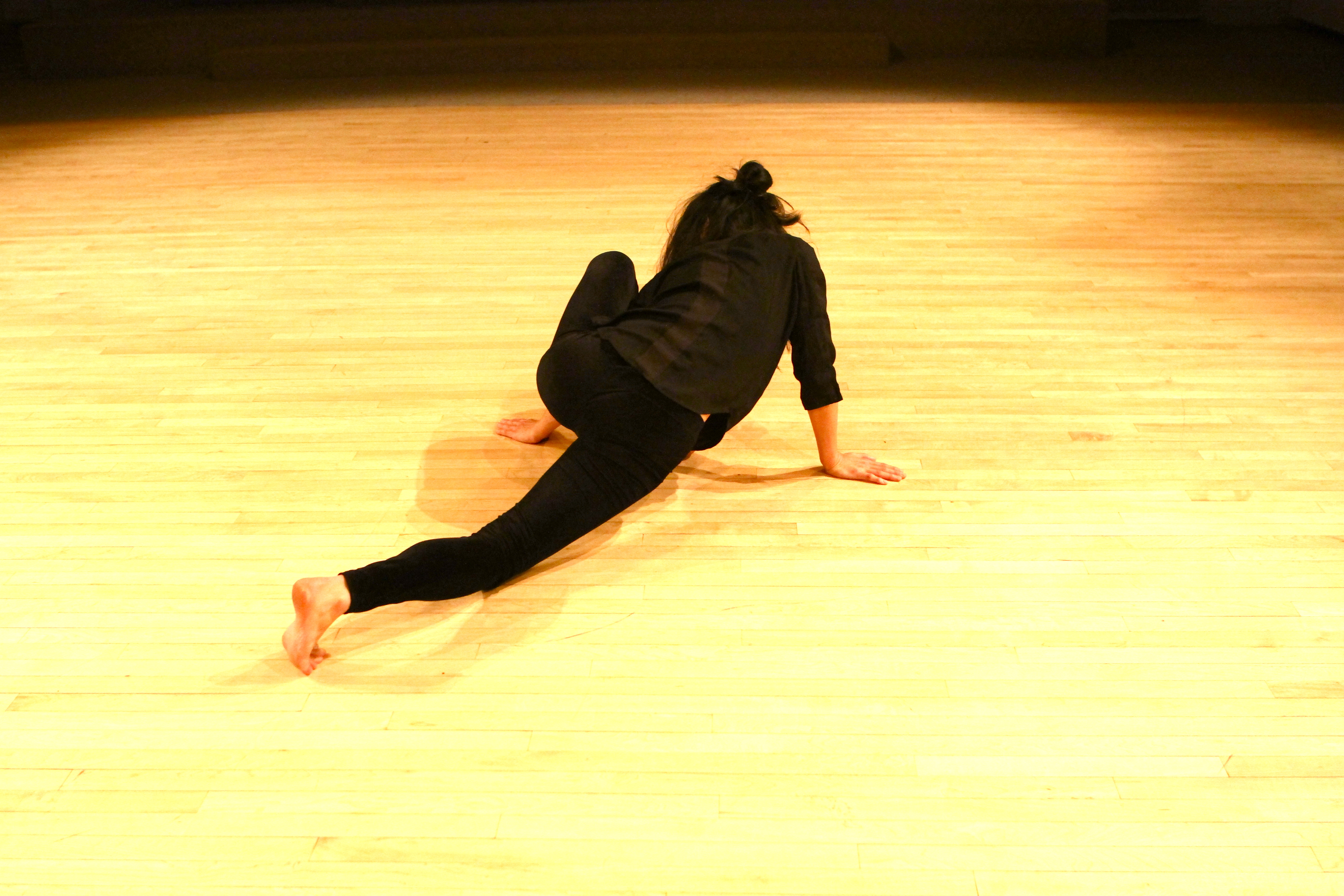 Las Gravitas is a solo. I wanted to make a solo that turns out to be the opposite of a solo, a solo about everything but me. No matter what I tried, I always came back to myself, my movement, and my body’s limitations and anxieties. While making this piece, I fluctuated between being a dancer who maybe took herself too seriously, a self-critical critic, and a choreographer who was unpredictable, kind of funny, and a little crazy, at least within the expectations she had for a solo. Through a collage way of making and working directly with collaborators, I hope to access and grab a hold of, at least a moment, in the ever-shifting, always changing solo. I read somewhere that a fingernail clipping contains the genetic blueprint of a whole person as well as an entire galaxy. The choreographer in me wants this as well. Wants the piece to expand outward and contract inward. Wants the dancer to do the same. Wants the viewer to lean forward into the space and peek into a hole seeing another galaxy that is strikingly like her own but strangely unfamiliar.